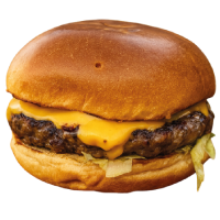 Buns brioché, steak de boeuf 150g, oignons rouges, salade, tomate, cheddar, sauce hamburger